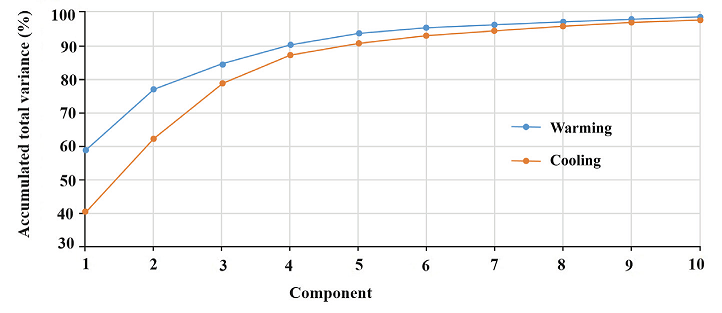 Figure 6 Accumulated total variance of principal components for air temperature warming and cooling rates.