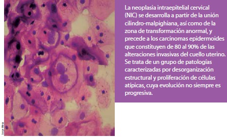 Atendiendo a la literatura de la especialidad, la neoplasia intraepitelial cervical (NIC) se desarrolla a partir de la unión cilindro-malpighiana, así como de la zona de transformación anormal, y precede a los carcinomas epidermoides que constituyen de 80 al 90% de las alteraciones invasivas del cuello uterino. Se trata de un grupo de patologías caracterizadas por desorganización estructural y proliferación de células atípicas, cuya evolución no siempre es progresiva.