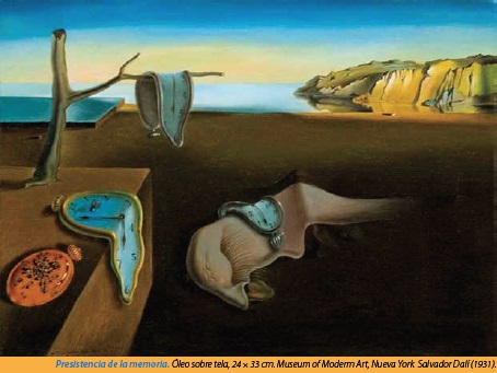 El primer cuadro es de Salvador Felipe Jacinto Dalí, el más ilustre hijo del pueblo de Figueras, y que formó parte de los revolucionarios de la pintura y precursores del surrealismo; este cuadro, pintado en 1931 cuando apenas tenía 27 años, muestra que el tiempo es maleable. Dalí nos quiere decir que, si reflexionamos un poco, el tiempo no existe sino sólo en nuestra memoria, de ahí su título: Persistencia de la Memoria (también llamado Les montres molles [Los relojes blandos]). Poseedor de una técnica extraordinaria y de una imaginación desbordada, Dalí nos dejó una herencia enorme de lienzos que se encuentran en todos los museos del mundo.
