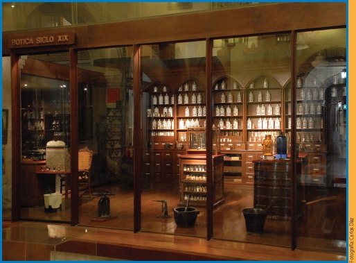 Esta botica fue adquirida por la Universidad Nacional Autónoma de México en 1978, y conserva su presentación original para ser exhibida en el Palacio de Medicina como un testimonio de la evolución de la medicina y farmacología en México; la fotografía es cortesía de Carlos Díaz.