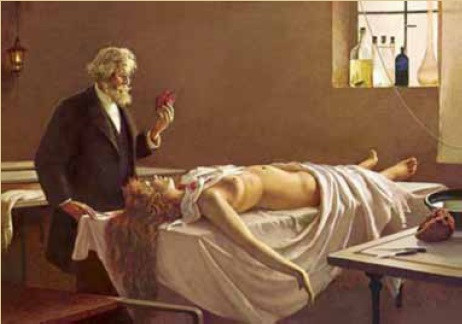 Así, en el cuadro pintado por Enrique Simonet en el siglo XIX, un médico está haciendo la necropsia de una joven y sostiene en la mano su corazón; el título del lienzo lo dice todo: ...Y tenía corazón.