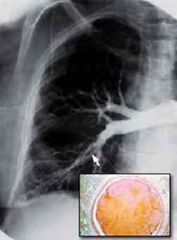 e) Bronquios con medio de contraste