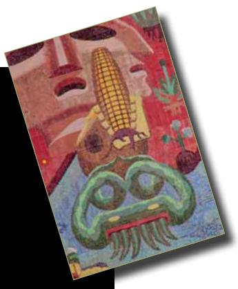 • Una serpiente que se muerde la cola rodea toda la composición, como símbolo de la eternidad, lo que da unidad a todo el mural.