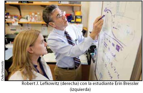 Robert Lefkowitz nació en Nueva York en 1942 y desde muy joven estaba convencido de que estudiaría Medicina2. Realizó sus estudios premédicos en el Columbia College con especialidad en química, su formación como médico en el Columbia College of Physicians and Surgeons y su internado y residencia en el Columbia Presbyterian Medical Center. Atraído por la medicina académica fue aceptado por Jesse Roth, uno de los pilares de la endocrinología molecular de los Estados Unidos, en los National Institutes of Health en Bethesda, Maryland. Fue allí donde Lefkowitz se contagió para siempre de la pasión por la investigación. Cuenta Lefkowitz, que después de leer unas revisiones de Earl Sutherland, quien recibió el Premio Nobel por el descubrimiento del AMP cíclico y el sistema de la adenilil ciclasa, decidió con Jesse Roth tratar de cuantificar los receptores para ACTH. El proyecto esencialmente consistía en marcar con yodo radioactivo a la hormona, determinar su asociación a preparación de membranas y su capacidad para activar a la adenilil ciclasa. Tras un año de frustraciones en intentos fallidos las cosas empezaron a funcionar y pronto publicó su primer trabajo3, seguido de otros en que se establecieron las condiciones necesarias para cuantificar receptores para hormonas peptídicas en las membranas de las células. Estos trabajos fueron un hito pues permitieron cuantificar la presencia de receptores. Es decir, lo que antes era esencialmente conceptual se podía ya medir.