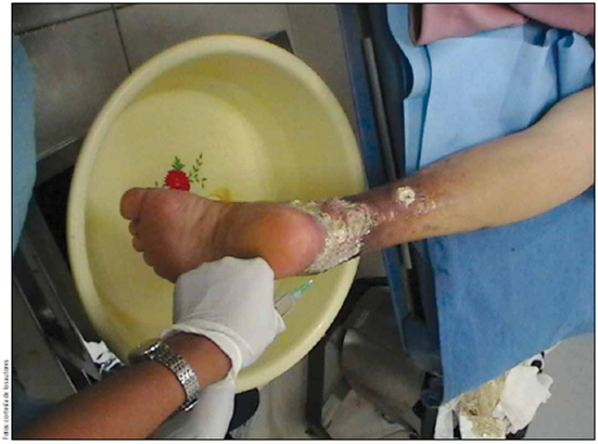 El procedimiento realizado fue: historia clínica completa, valoración bioquímica (biometría hemática, química sanguínea y hemoglobina glucosilada), evaluación de la lesión, toma de muestras para el cultivo de microorganismos, limpieza y debridación de la lesión, aplicación de las nanopartículas en forma directa sobre las lesiones, protección con gasa y vendaje, con repetición del procedimiento cada 48 horas; evaluación periódica, fotografías y evaluación final. Durante el tratamiento, los pacientes siguieron el control integral y tratamiento de su diabetes.