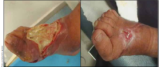 Uno de los problemas más graves que sufren los pacientes con diabetes mellitus es el pie diabético. Las alteraciones metabólicas que determinan macro y micro angiopatías en todo el organismo, unidas a la neuropatía que ocasiona insensibilidad en las extremidades inferiores, da lugar a lesiones por compresión en la planta del pie, ortejos, etc., que progresan a una pequeña úlcera, que de inmediato es colonizada por microorganismos; esta lesión se extiende rápidamente a los tejidos profundos: grasa subcutánea, tendones, músculos e incluso los huesos.
