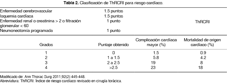 Calificación de riesgo operatorio en cirugía de tórax no cardíaca