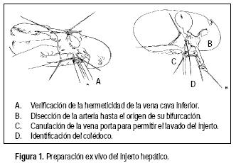 Se realiza al mismo tiempo que la hepatectomia en el receptor y consiste en preparar las zonas de anastomosis vascular y biliar del injerto.