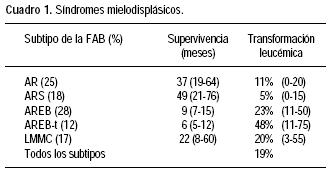 Aunque como ya se señaló, una gran proporción de casos evoluciona a LAM, la historia natural de estos síndromes comprende desde formas indolentes con evolución estable por muchos años hasta formas que rápidamente evolucionan a leucemia aguda (Cuadro 1).