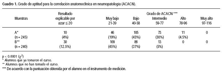 Aptitud para la correlación anatomoclínica de neumopatología en alumnos de pregrado