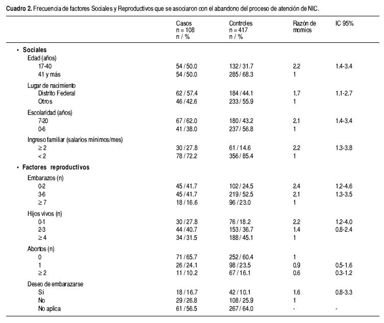 Objetivo. Determinar factores asociados al abandono del proceso de atención de NIC.