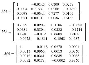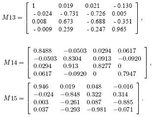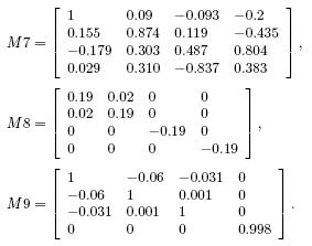 Matrices físicamente inconsistentes para las que Q(M) > 3. Las matrices M13, M14 y M15 fueron tomadas de las Refs. 12, 31 y 32, respectivamente.
