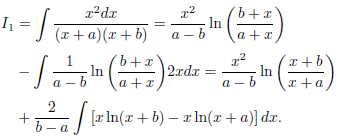 Once again we are left with an integral over the sum of the one loop level self interacting contributions which we write as a logarithmic integral (the detailed derivation is found in Appendix B)