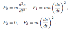 Corollary 11. Let ¡ be a moving timelike particle in De- Sitter space. Then, energy on the particle in the resultant force field (F = f + N + W) can be written in terms of the energy on the same particle in tangent, normal, binormal, and its own vector field as the following.