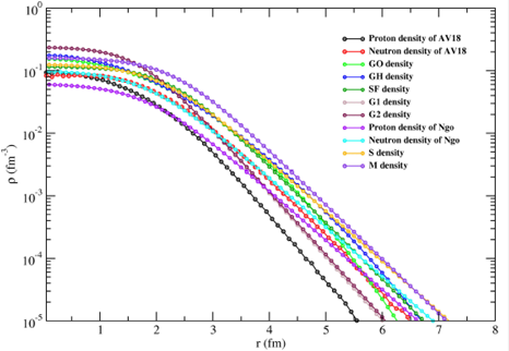 α is a parameter in the range 0 ≤ α ≤ 0.4. Rm is the matter radius of the nucleus. The values of Rm and α are taken as 2.53 fm and 0.02 fm, respectively. This density is indicated as GH in our work.