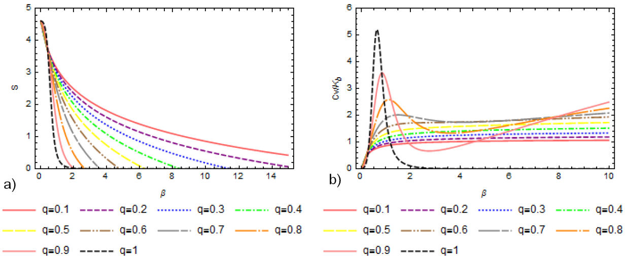 In Fig. 3 we observe that the entropy decreases with parameter β and has an upper limit for the high temperatures: The effect of γ on the entropy S is more apparent for the high temperatures. For the low temperatures, we have S → 0.