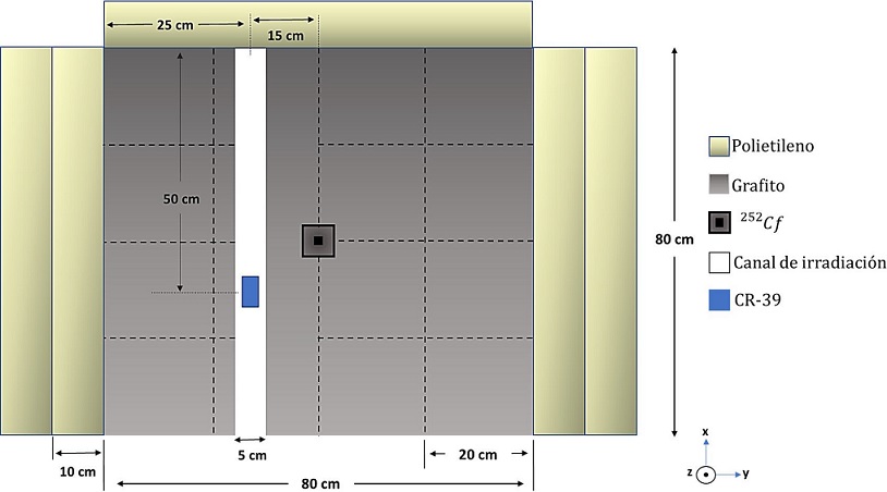 Una vez preparadas las ventanas del detector CR-39, este fue expuesto ante una fuente de 252Cf moderada con grafito del Laboratorio de Física Nuclear de la Universidad Simón Bolívar (USB) de 0.35∅×1 cm2 (