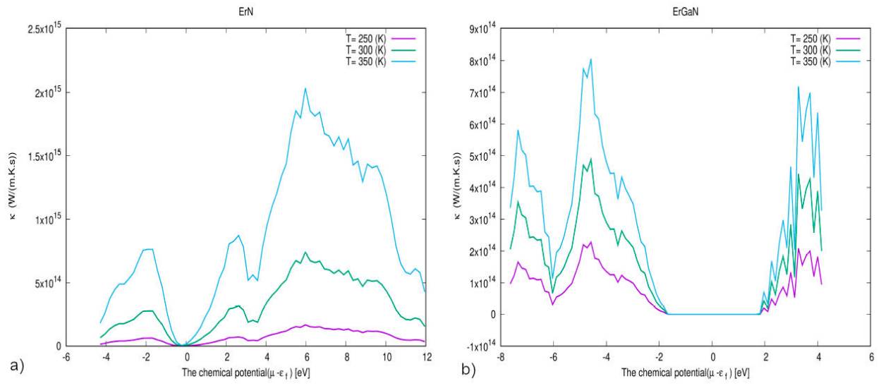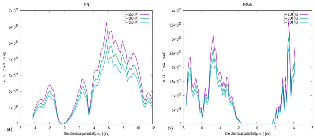 The electrical conductivity as a function of chemical potential at three constant temperatures (250,300,350) K is shown in Fig. 8, where it is clear that