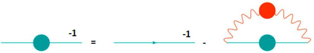 This equation involves the full photon propagator and fermion-photon vertex. The former, by a similar reasoning, can be seen to obey its own SDE depicted in the diagram in Fig. 9.