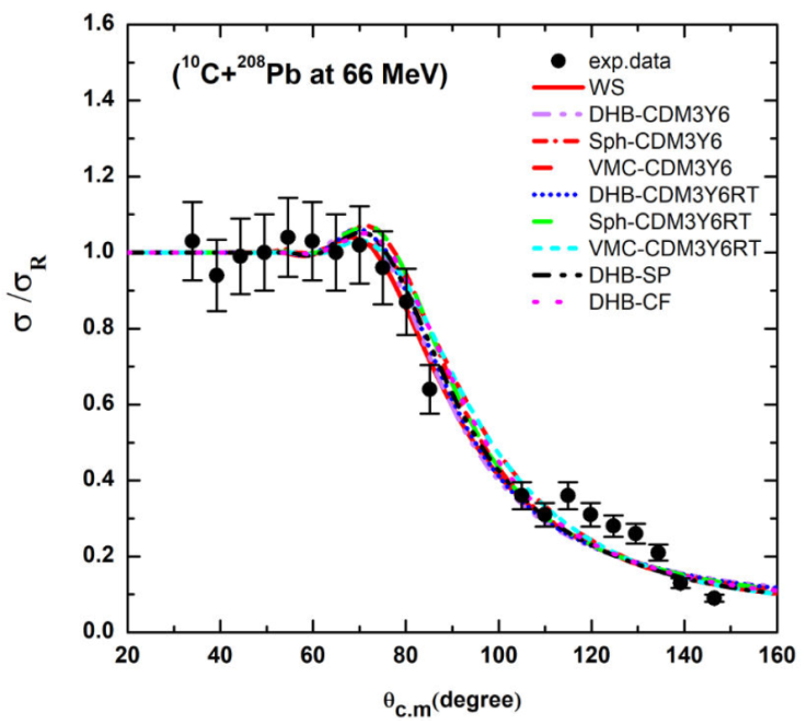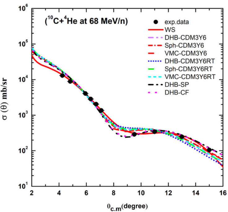 Table I The best fit parameters for 10C + 4He, 27Al and 58Ni systems extracted from the different implemented potentials and densities combination.