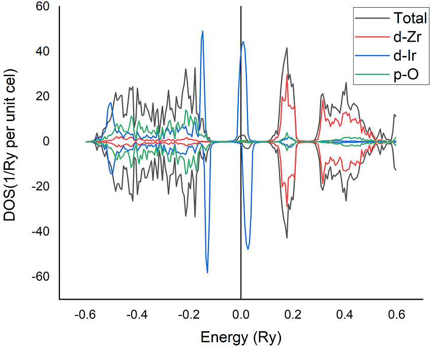 | Total Energy | Total magnetic moment | Zr spin moment | Oxygen spin moment | Ir spin moment | |