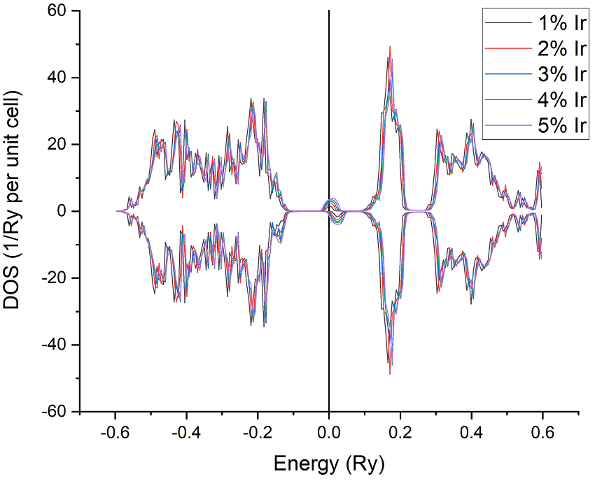 The results are 301 K for 1% atomic change Ir doping, then goes decreasing, this makes the material a good candidate for spintronics and optoelectronics applications with an energetically stable structure in comparison with the pure host material indicated by the lower total energy values found [37].