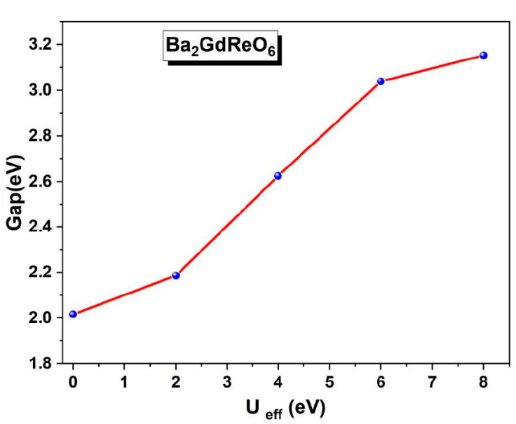 Figure 4 Variation of the energy gap as a function of Hubbard parameter U for Ba2GdReO6