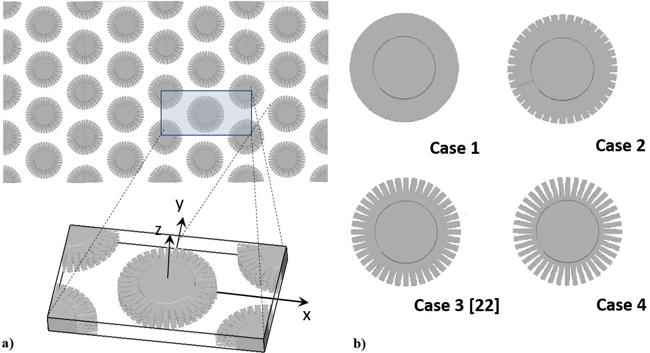 In engineering, the best solutions are the simplest. For this reason, the present work intends to complement previous works [22] on the subject by changing the fin segmentation depth, l s . Four different configurations [Fig. 1b)] were studied: l s /l f = 0.0 (smooth fin), 0.25, 0.5 (base case [22]), and 0.75, where l f is the total fin length and l s is the segmentation depth [see Figs. 1b) and 2b)]. The flow characteristics, computational domain length, and resolution were the same for all cases (Fig. 3).