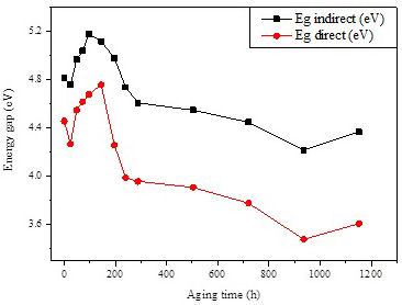 FIGURE 12 Variation of direct and indirect optical band gaps with weathering aging time.