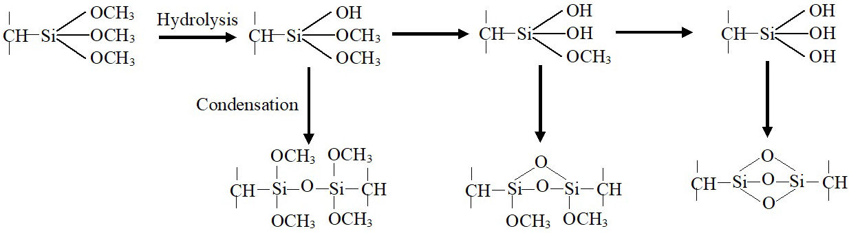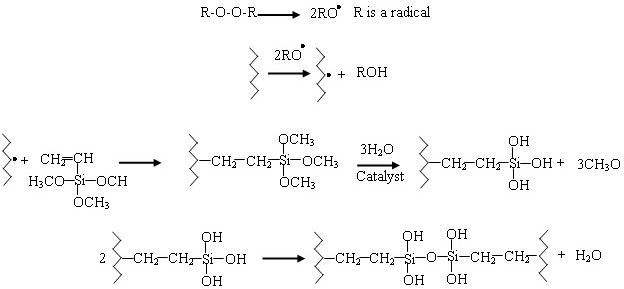 FIGURE 2 Chemical reactions of Si-XLPE cross-linking.
