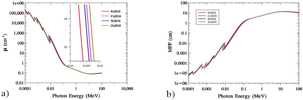 For the energy range 0.01 up to 100 MeV the photon attenuation coefficient for the samples record the overlapping values while the MFP record (1-10 cm) for the interesting energy region (0.1-100 MeV) as shown in Fig. 11.