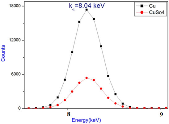 Figure 4 Shows the X-ray fluorescence plots for Copper sulphate.