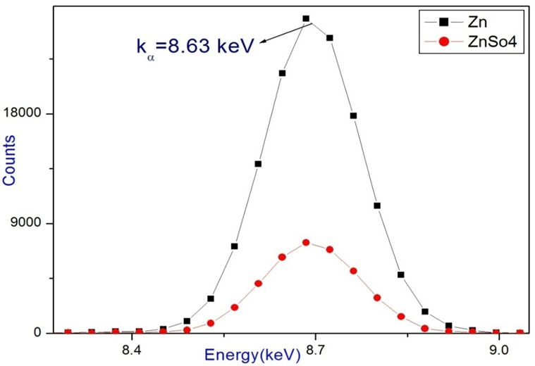 Figure 6 Shows the X-ray fluorescence plots for Zinc sulphate.