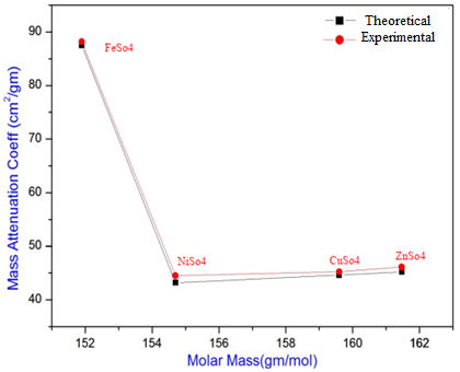 Because of the grain form and crystal structure of atoms, the mass attenuation coefficient (MCA) for sulphate compounds was calculated using Table I. It was determined that the (MCA) for sulphate compounds increased with larger molar mass except for Iron sulphate. It can be seen in Fig. 7 and Table III.
