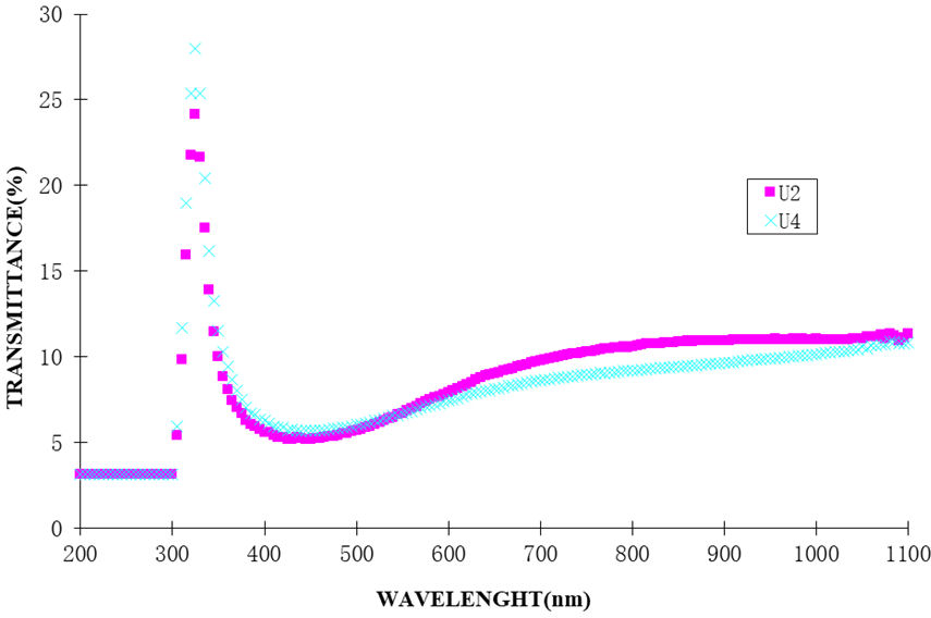 where α is the absorption coefficient; t is film thickness, I 0 and I t are the intensities of initial and transmitted light respectively.