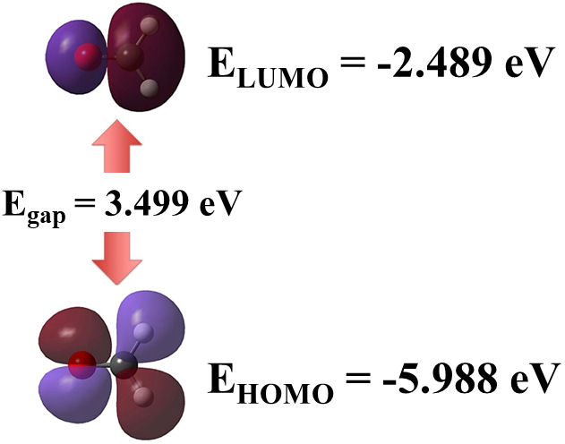 FIGURE 2 Frontier molecular orbitals HOMO and LUMO for formaldehyde molecule. Also, HOMO-LUMO gap is annotated.