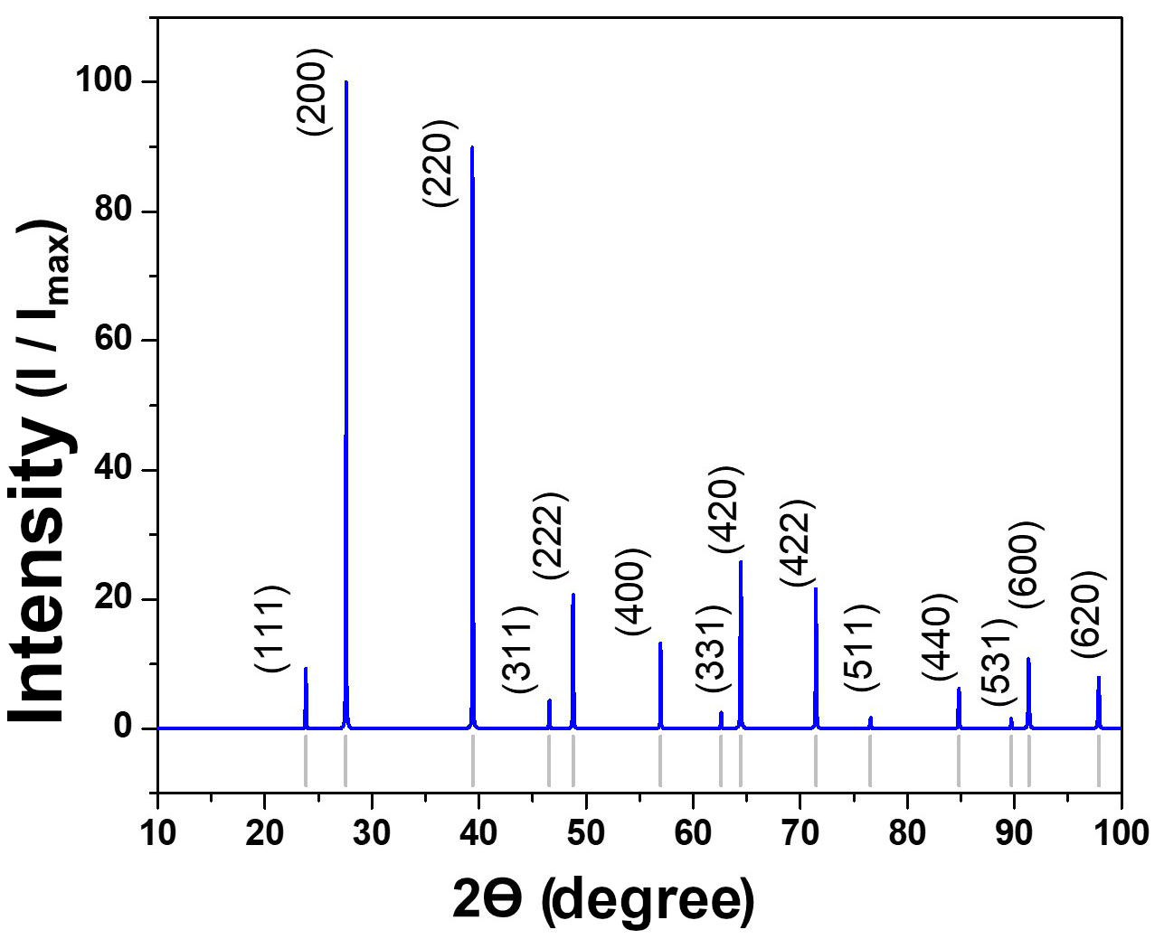 FIGURE 4 Theoretical X-ray diffraction pattern of PbTe.