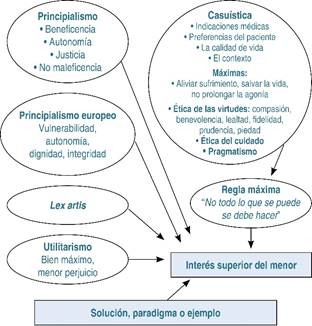 Reiteramos que no existen guías que ayuden a resolver todos los casos, ya que cada uno es distinto. Lo importante es que el grupo médico participante en la atención de estos pacientes cuenten con una metodología que les permita abordar cada caso, para tomar decisiones más justas. En la Figura 1 se plantean los modelos que consideramos pueden servir para realizar reflexiones bioéticas, como apoyo a la solución de problemas.