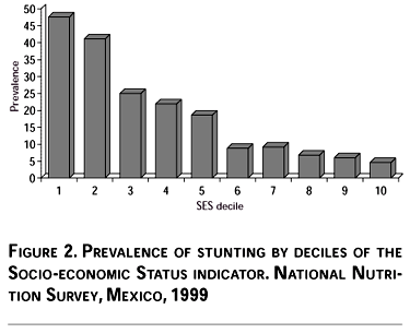 One of the groups with the poorest living conditions in Mexico is the indigenous population. Close to two thirds of the families of indigenous children< 5 years of age are in the two lowest SES deciles, compared to less than 15% of the families of non-indigenous children. One of the articles in this issue9 compares the nutritional status of indigenous and non-indigenous children and investigates to what degree the SES indicator described above explains the differences. The prevalence of stunting is ~3 times higher in indigenous (44.3%) compared to non-indigenous children (14.5%) and the differences were reduced to about half when adjusting for SES, but remained significantly higher in indigenous children (p<0.05).