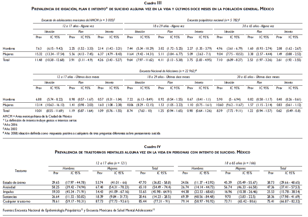 Palabras clave: suicidio; intento de suicidio; prevalencia; mortalidad; epidemiología; México