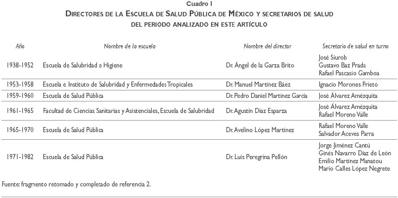 Las palabras del epígrafe fueron pronunciadas por el doctor Daniel Martínez García en una ceremonia de entrega de diplomas en la Escuela de Salud Pública que él mismo dirigía en el inicio de 1960 (cuadro I). Habían pasado treinta años desde la consolidación de la Escuela como institución formadora de técnicos que operaban en el ámbito local y de la influencia de la medicina social como eje articulador del trabajo de salubristas y médicos. Este mensaje a los egresados no distaba de los postulados de aquella corriente médicosocial ni de la visión higienista-preventivista que habían prevalecido en la Escuela. Y es que a lo largo de la década de 1930, la entonces llamada Escuela de Salubridad e Higiene, imbuida en los preceptos de la medicina social que resaltaban la importancia de los factores sociales, políticos y culturales en la recurrencia de enfermedades epidémicas, mantuvo como una prioridad la oferta de cursos para formar a médicos sanitaristas, enfermeras, trabajadoras sociales e ingenieros que trabajarían en numerosas comunidades urbanas y rurales. Como bien lo asentó Martínez García, la Escuela capacitaba a "médicos de pueblos".