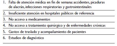 Los resultados empíricos del estudio indican que el principal rubro que desencadena el endeudamiento es la necesidad de atención médica. Esta causal corresponde a gastos diversos pero referidos consistentemente a carencias de disponibilidad asistencial cuando la clínica local no se encuentra en servicio o no cuenta con los medios o infraestructura requeridos. La búsqueda entonces implica salir del municipio y recurrir a instancias de atención públicas o privadas en Cuajinicuilapa, Ometepec, Pinotepa Nacional o Santiago Jamiltepec, en un primer radio de aproximadamente 150 kilómetros, a menudo sin orientación ni modalidades de referencia. Esta situación revela a su vez la carencia de un sistema de atención articulado en sus diversos niveles.