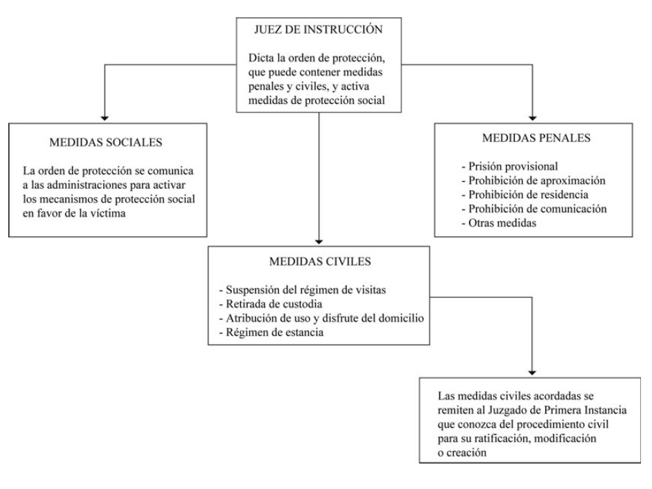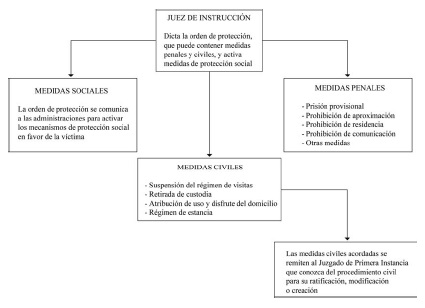 Para poder hacernos una idea clara de lo que es la orden de protección y de su tratamiento jurídico y procesal en los juzgados, valoremos el esquema que se muestra en la siguiente página.18