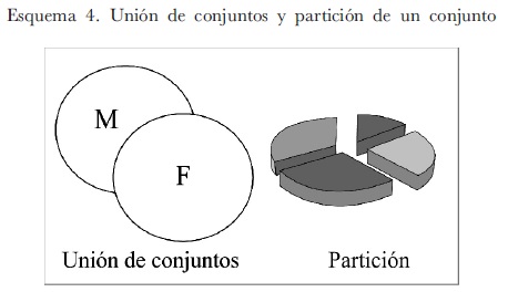 Me bastará con la definición de George Cantor para introducir el concepto: "un conjunto es una colección como totalidad de objetos definidos y distintos de nuestra intuición o nuestro pensamiento".5 En términos sencillos, por conjunto puede significarse un grupo de elementos que tienen algo en común. Se trata de una colección de elementos o datos, que no sólo se encuentran amontonados, sino que mantienen una cierta relación entre ellos. Las piezas de un rompecabezas (puzzle), por ejemplo, son elementos solos, pero que al combinarse o trabarse unos con otros nos permiten ver la figura de todo el rompecabezas. La figura nos permite ver lo que el todo aparentemente esconde cuando todas las piezas quedan reunidas. Cada elemento que forma parte del conjunto, además de estar definido en lo individual, se caracteriza por ser una parte del conjunto. Aunque los elementos del conjunto pueden ser diferenciables entre sí, mantienen alguna nota o propiedad que los unen.