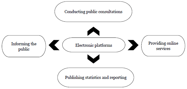The introduction of such a tool as electronic platforms is aimed at promoting greater involvement of citizens in making managerial decisions. The electronic platform can provide opportunities for conducting online consultations, online discussions of relevant issues in the format of a professional discussion, holding forums or public hearings, and much more. Such electronic systems will help to bring ordinary people and government officials closer together, as they will help to analyse and monitor the needs of the public. This subject requires much more consideration, which is why this study will serve as a relevant foundation for further research.