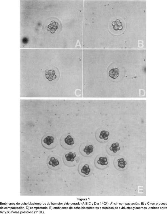 La etapa de segmentación de los embriones obtenidos se determinó con base en el número par de los blastómeros presentes, o el número par inmediato superior. En los embriones de ocho blastómeros se consideraron también aquellos que se encontraban compactados.