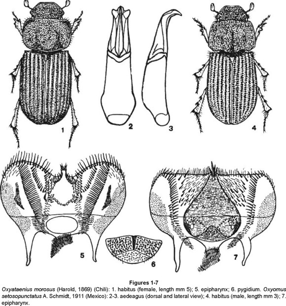 Key Words: Coleoptera, Aphodiini, Eupariini, Oxyomus setosopunctatus, [Oxyomus] morosus, Oxyataenius new genus, Mexico, Chile.