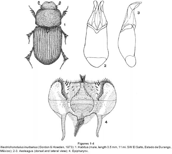 Neotrichonotulus inurbanus (Gordon & Howden, 1973) comb. nov. (Figs 1-4) (2,3)