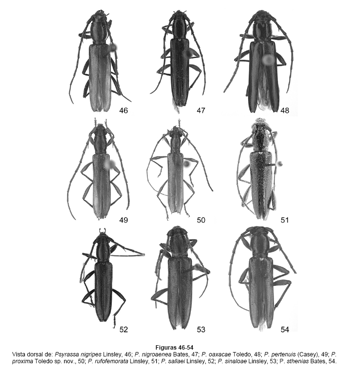 Toledo, V. H. 2002. Nuevas especies de Psyrassa Pascoe (Coleoptera: Cerambycidae: Cerambycinae: Elaphidiini). Folia Entomol. Mex., 41(1):57-62. [ Links ]