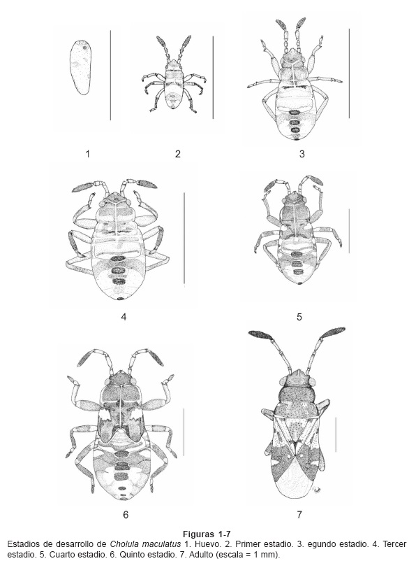 Biología y descripción de los estadios ninfales de Cholula maculatus Distant (Hemiptera: Heteroptera: Lygaeoidea: Rhyparochromidae: Myodochini)